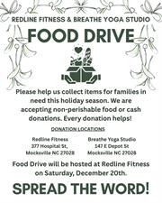 Redline Fitness and Breathe Yoga Studio will be accepting non-perishable food items or monetary donations, now through December 17th. The food can be picked up at Redline Fitness on Saturday, December 20th @ 9am.
